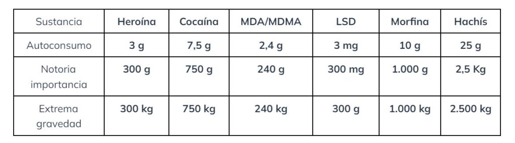 Por tanto, para determinar si la cantidad de droga es elevada se debe acudir al cuadro de dosis mínimas psicoactivas de las principales sustancias tóxicas objeto de tráfico de drogas elaborado por el Instituto Nacional de Toxicología.